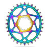 The one and only absoluteBLACK Premium Sram compatible Direct mount BOOST 1X Oval narrow-wide chainrings designed for GXP, DUB and Long BB30 cranks. This chainring is dedicated for Boost bikes (3mm offset). This special PVD Rainbow Titanium coating process makes the chainrings very durable and incredibly beautiful. NOTE: Due to the nature of the PVD process, every chainring is unique, and colour may vary. Not a single chainring is the same which makes your new ring completely individual.