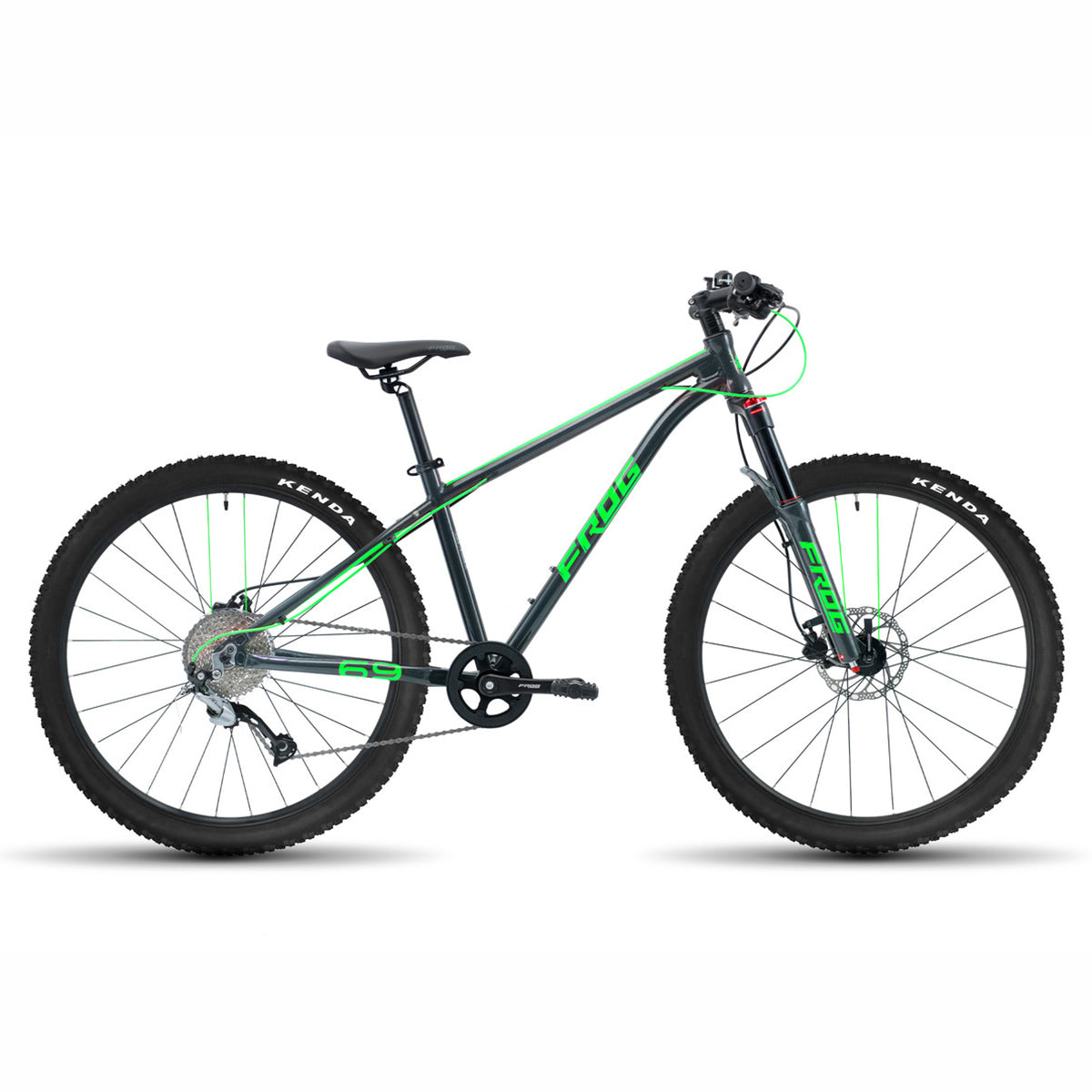 This agile bike also features an oversized handlebar and stem to reduce flex, giving your little shredder better control. It also features Kenda MTB tyres for maximum grip and comfort in all weather conditions and terrains. And patented Frog cranks let kids pedal more efficiently, keeping them fast, nimble, and ahead of the game.
