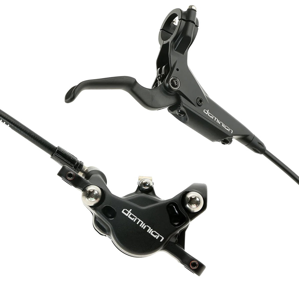 The best just got better. The limited-edition Hayes Dominion T2 packs the power, sensitivity, and reliability the Dominion family is known for into its lightest chassis yet. Featuring a Reynolds designed and in-house produced carbon-fiber lever, titanium hardware, composite reservoir cover, pads with aluminum backing plates, and precise weight-reducing machining, the T2 is 50g lighter per brake (254g) than the Dominion A2.