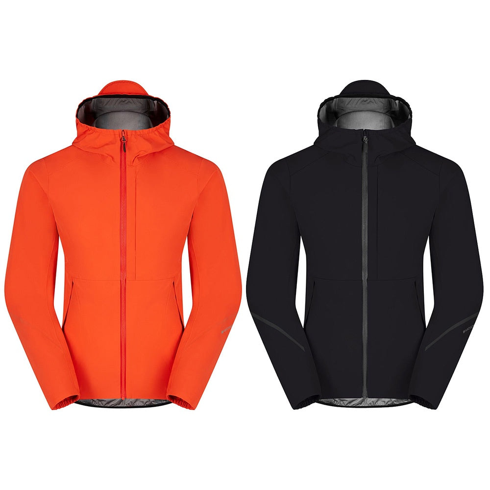 Lightweight waterproof mountain bike jacket with hood, protects from downpours in mild conditions. Cool enough to wear all day and small enough to pack down.