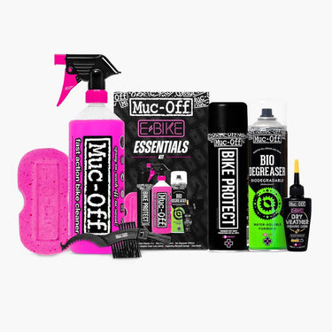Muc-Off E-Bike Essentials Kit Introducing the Muc-Off eBike Essentials Kit, a small but mighty bundle of e-awesomeness! Packed with everything you need to look after your eBike, this kit will have you covered whatever the weather. Featuring cleaner, sponges, brushes and our epic eBike specific lubes that have been beef...