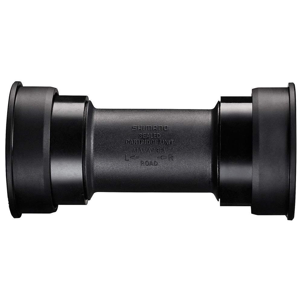 Complete press-fit bottom bracket assembly for Shimano HollowTech II road cranks.