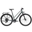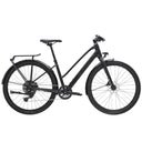 A lightweight aluminium frame with sleek internal cable routing and a midstep frame design, 650b wheels and wide 50c tyres for capability and comfort on varied terrain, a Shimano CUES 1x9 drivetrain with a wide range of gearing, comfortable ergonomic grips, powerful hydraulic disc brakes for all-weather stopping power, a MIK-compatible rear rack, lights, mudguards and a kickstand.