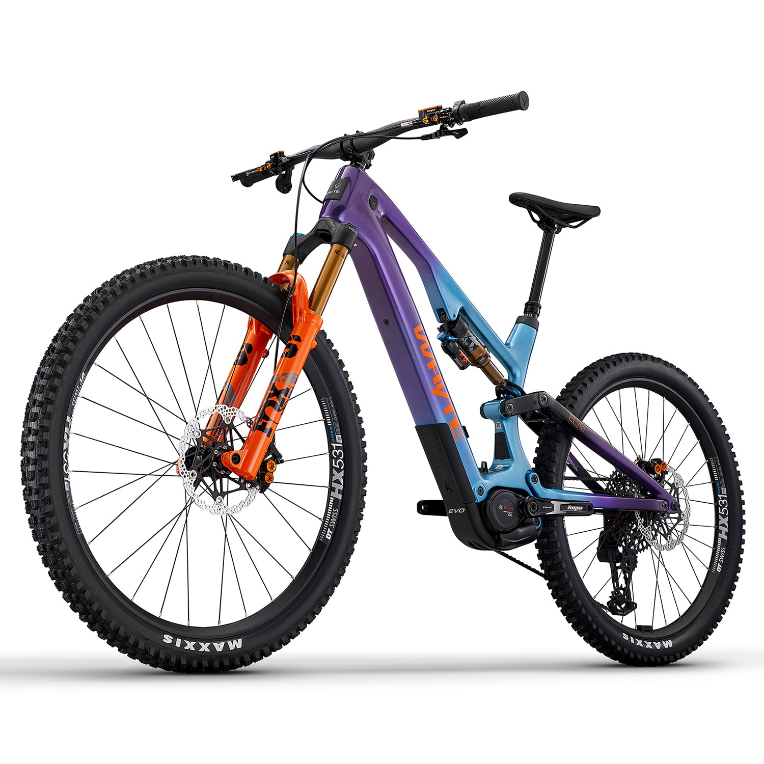 The ELyte EVO Stag Works is specced to perform flawlessly from the shop floor so you can focus on what really matters: getting the most from your ride. Top-shelf Fox Factory suspension front and rear tames the roughest trails with ease; SRAM's XO T-Type AXS electronic gearing gives you reliably impeccable shifting performance; richly powerful Hope Tech 4 V4 four-piston hydraulic disc brakes deliver the ultimate in braking control; Hope cranks and hubs; traction-rich Maxxis tyres; and more. It’s the finest trail-proven kit to serve you perfectly, wherever and however hard you ride.